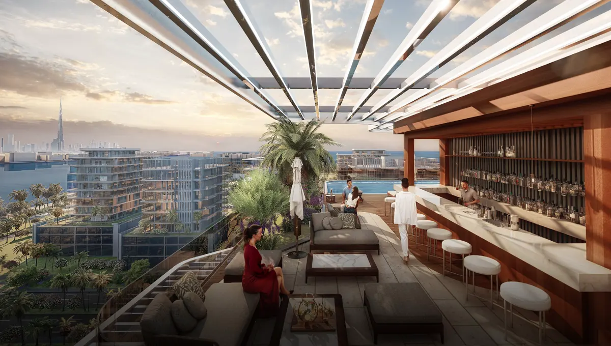 Helvetia Marine Residences at Dubai Islands offers a wide range of amenities meticulously designed to enrich every facet of the resident experience. Fitness and activity are championed with a rooftop gym and dedicated padel courts. For tranquility and rejuvenation, residents can retreat to the serene meditation room and wellness garden. The community supports family bonding and leisure with a sparkling swimming pool and a dedicated kids’ play area. Complemented by the convenience of an on-site restaurant, grocery store, electric parking, and lush green spaces, Helvetia Residences delivers a truly luxurious and self-contained lifestyle.