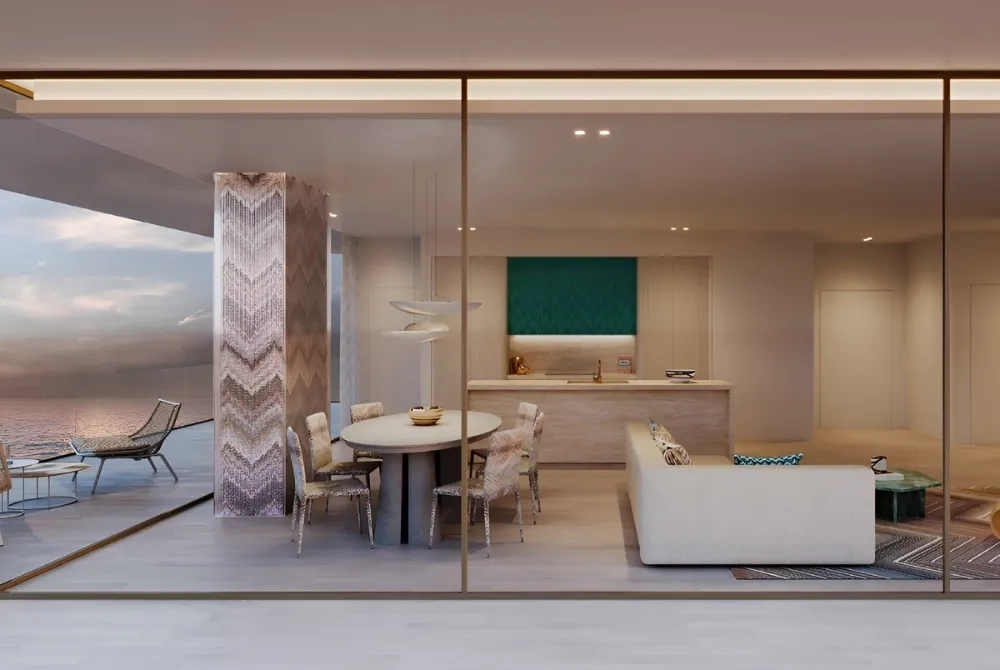 Octa Isle Interiors by Missoni is a limited collection of residential units meticulously designed to reflect the brand’s signature aesthetic of bold colors, geometric patterns, and luxurious textures. Offering luxury waterfront residences ranging from spacious 2, 3 & 4 bedroom apartments with modern interior design and spacious floor planning. The interiors of these homes are crafted with the highest attention to detail, featuring floor-to-ceiling windows that capture breathtaking panoramic views of the Arabian Gulf. Every finish, fixture and construction has been carefully selected to embody the vibrant and elegant spirit of Missoni, ensuring a living space that is both visually stunning and exceptionally comfortable.